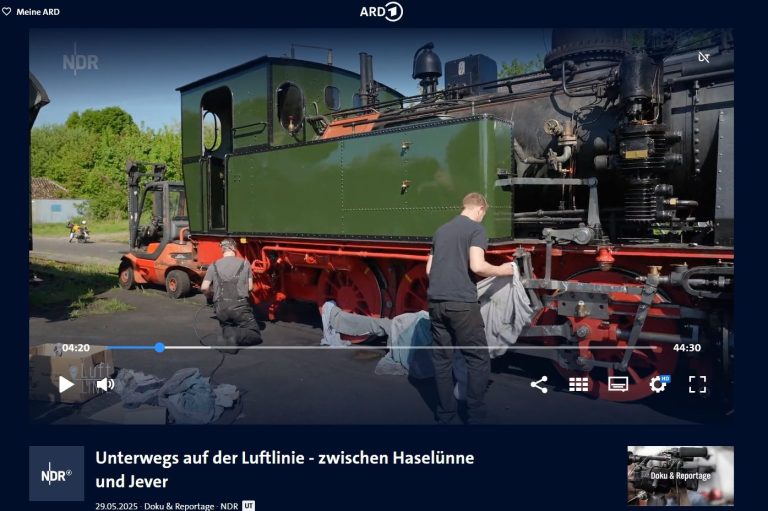 Kürzlich hatten wir einen kurzen Auftritt im NDR Fernsehen. Der Reporter Thilo Tautz startete für die Serie "Unterwegs auf der Luftlinie" in Haselünne und hat uns spontan am Lokschuppen besucht. Wir hatten den Feiertag zum Arbeiten genutzt, sodass ein paar schöne Szenen entstanden sind. Vielen Dank von uns für den Besuch!