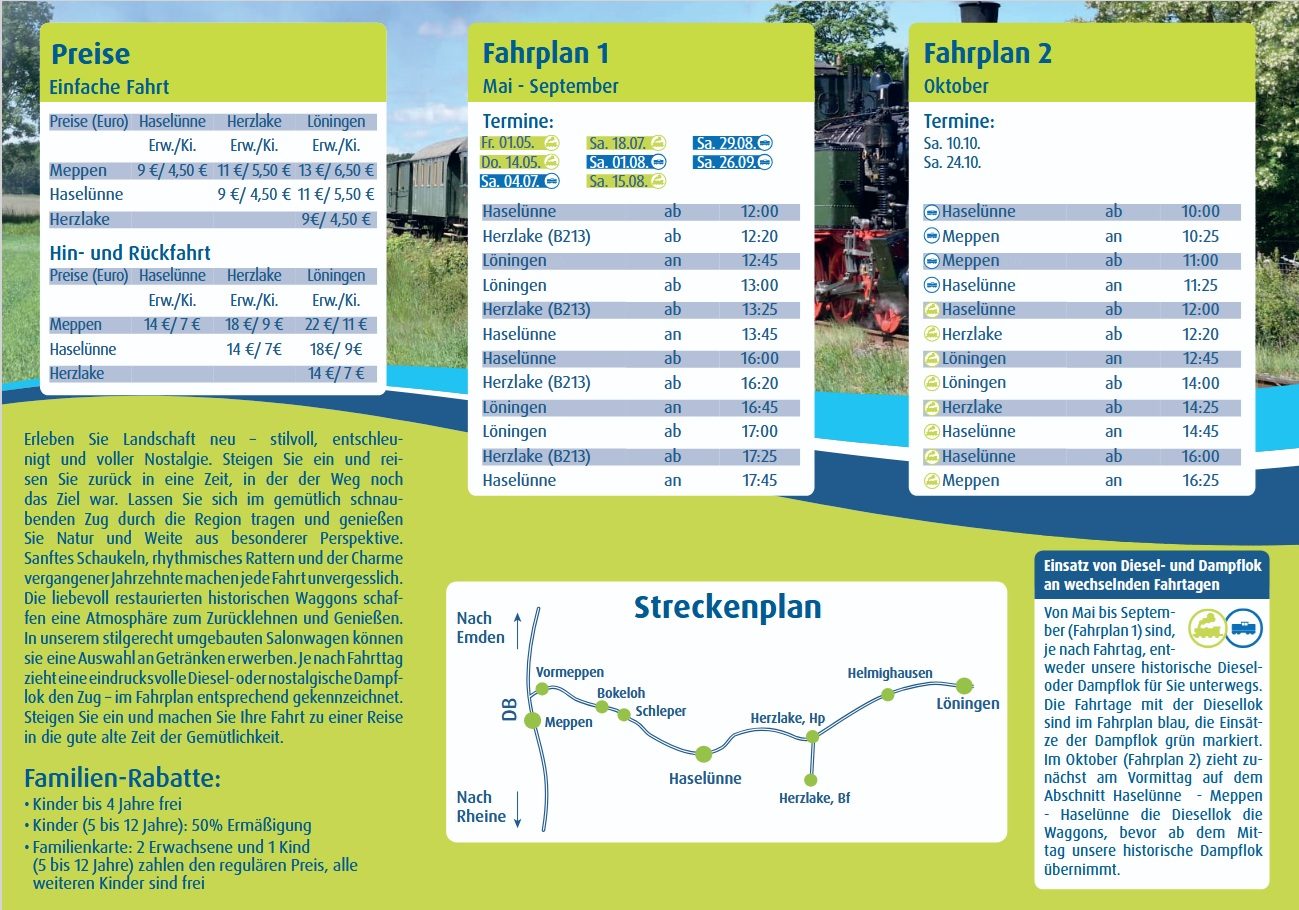 Sobald die Strecke im Herbst wieder befahrbar ist, soll es aber Fahrten geben. Informationen dazu gibt es dann hier auf der Seite, sowie bei Hasetal Touristik in Löningen.